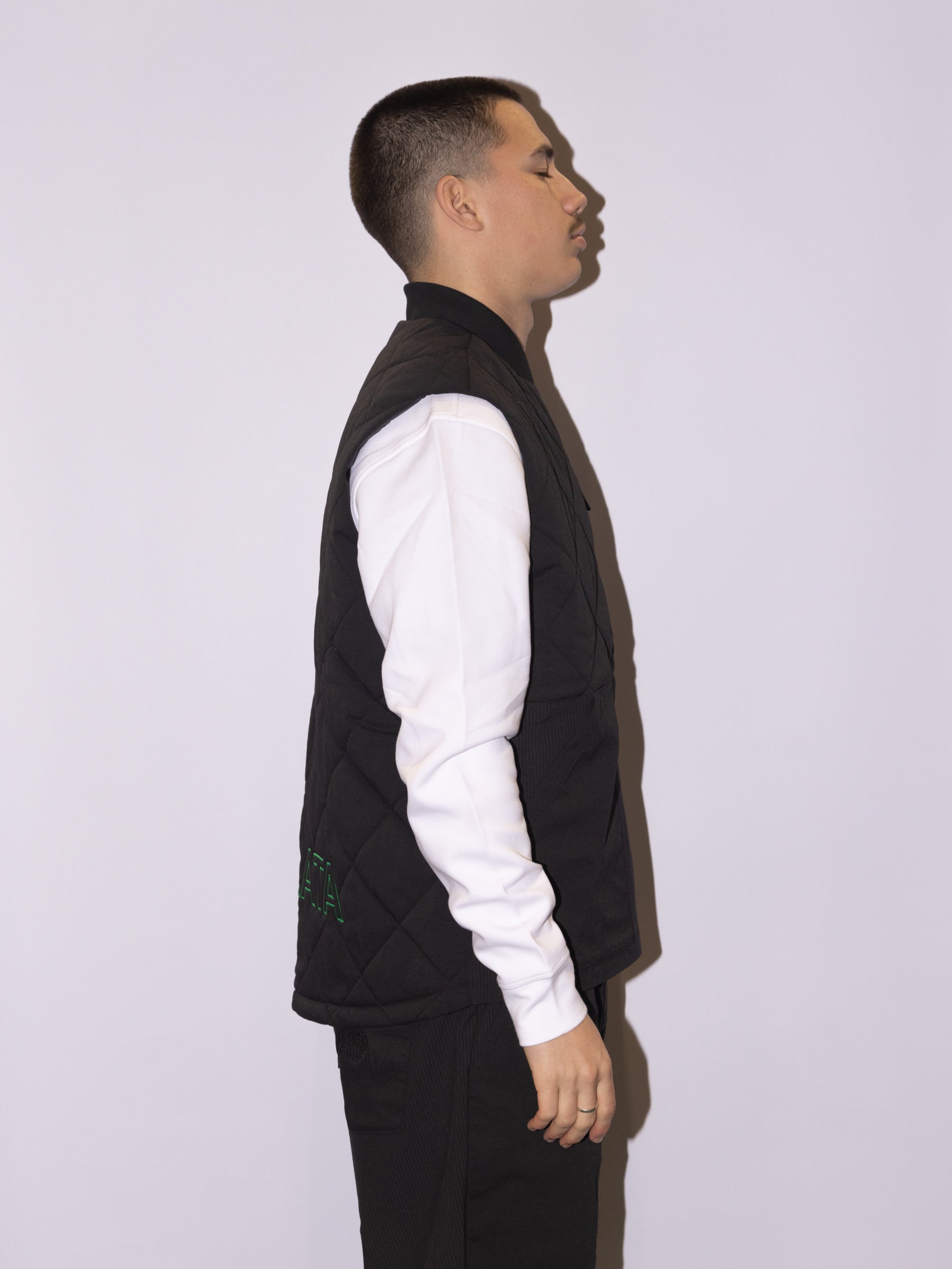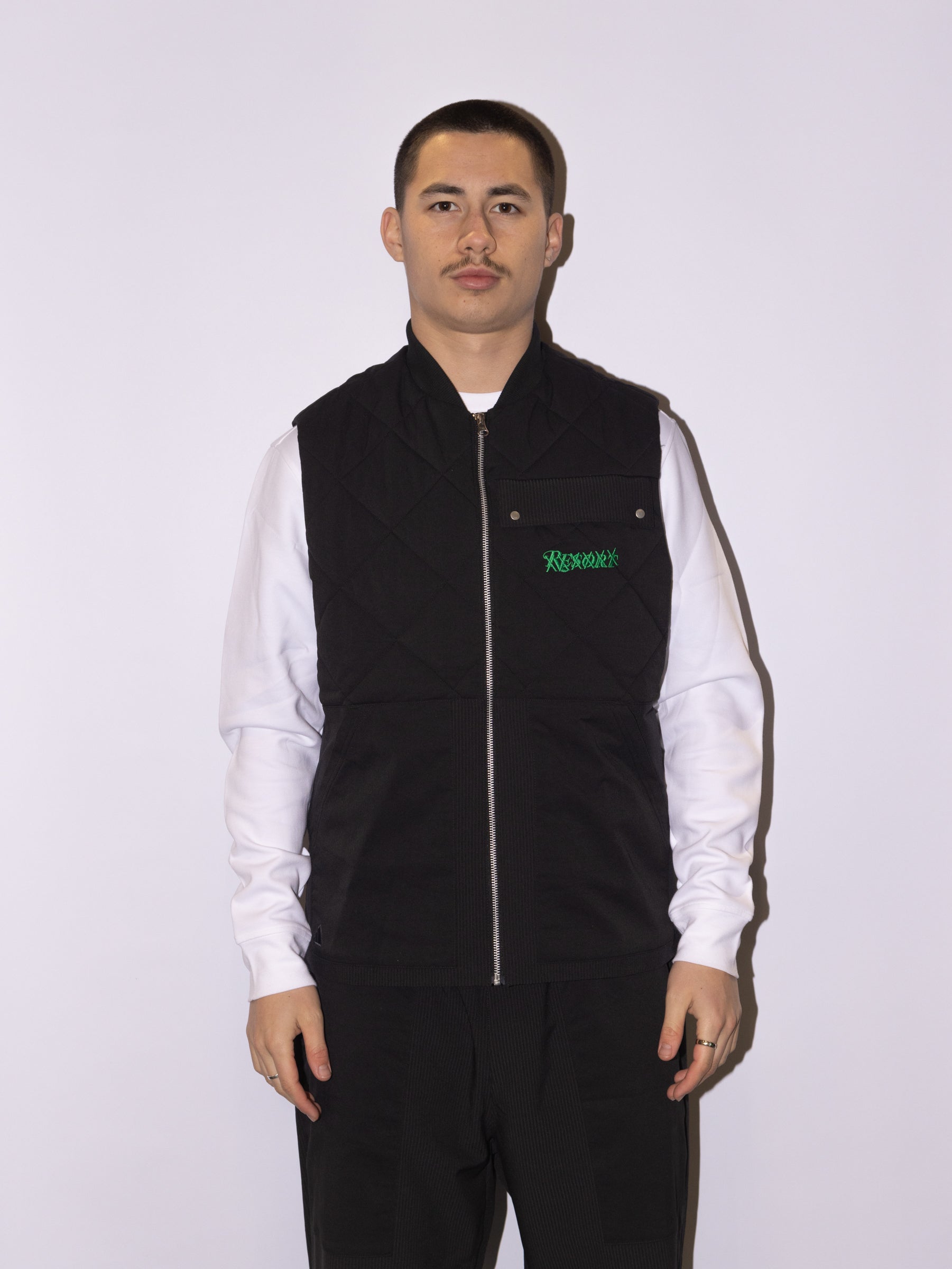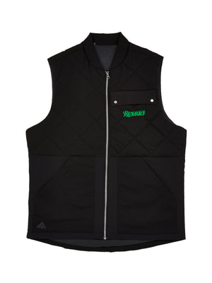 The Quilted One. Water-repellent and comfy as new pants. This Adidas x Resort golf vest will make you rethink your cool-weather course wear. The quilted design offers warmth during chilly rounds with an easy loose fit. A durable water-repellent finish is gonna keep you dry. Although obvs not your arms. Its a vest after all.